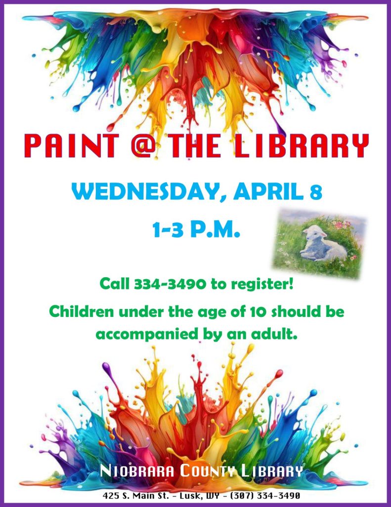 Artist Barb Orr has three adult Paint @ the Library sessions planned this winter. The dates are Wednesdays February 11, March 11 and April 8 from 1-3 p.m. Watch for more details. Children under the age of 10 must be accompanied by an adult. Call the library at 307-334-3490 to reserve your space. Library programs are free and open to the public.