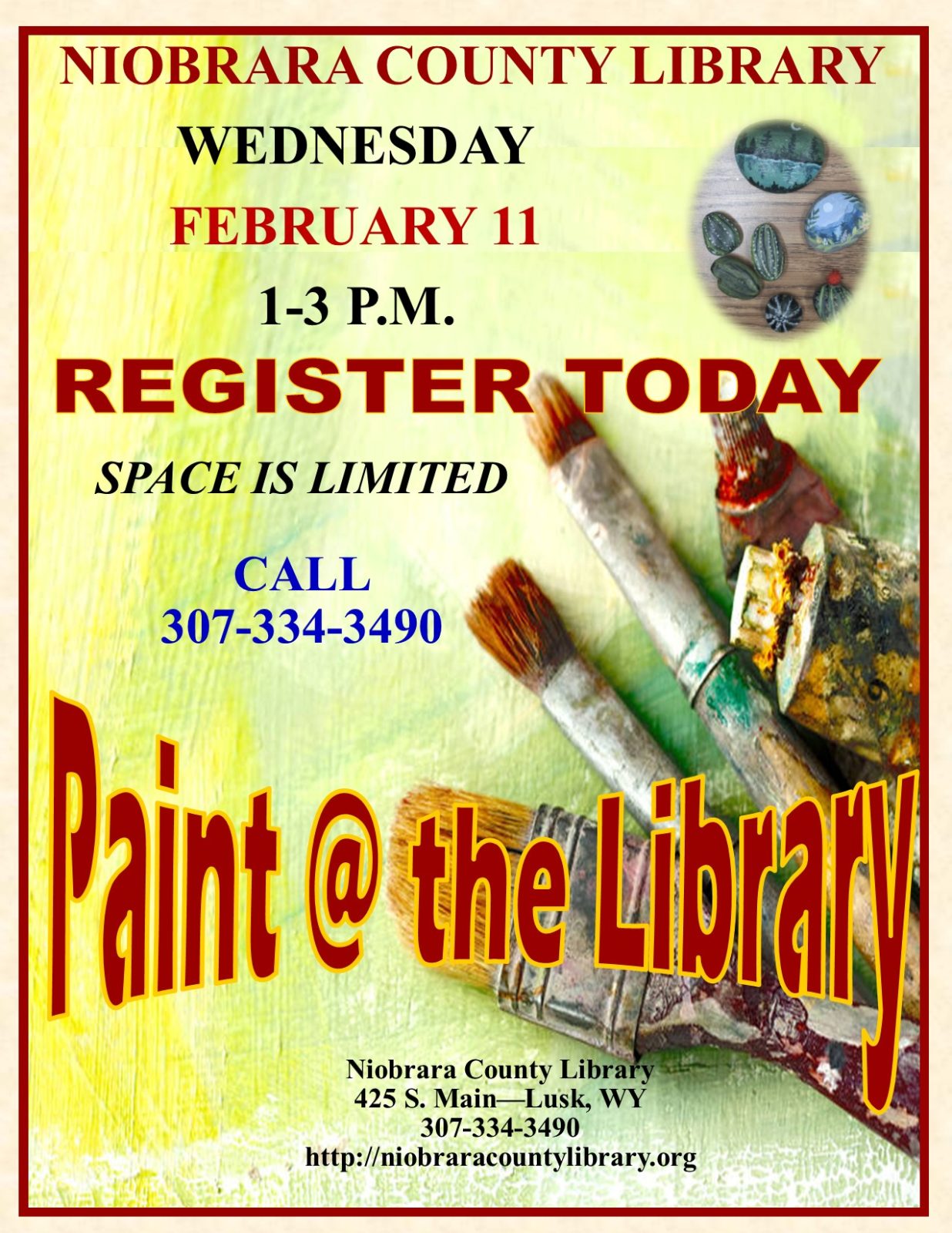 Artist Barb Orr has three adult Paint @ the Library sessions planned this winter. The dates are Wednesdays February 11, March 11 and April 8 from 1-3 p.m. On February 11 attendees will enjoy rock painting. Children under the age of 10 must be accompanied by an adult. Call the library at 307-334-3490 to reserve […]